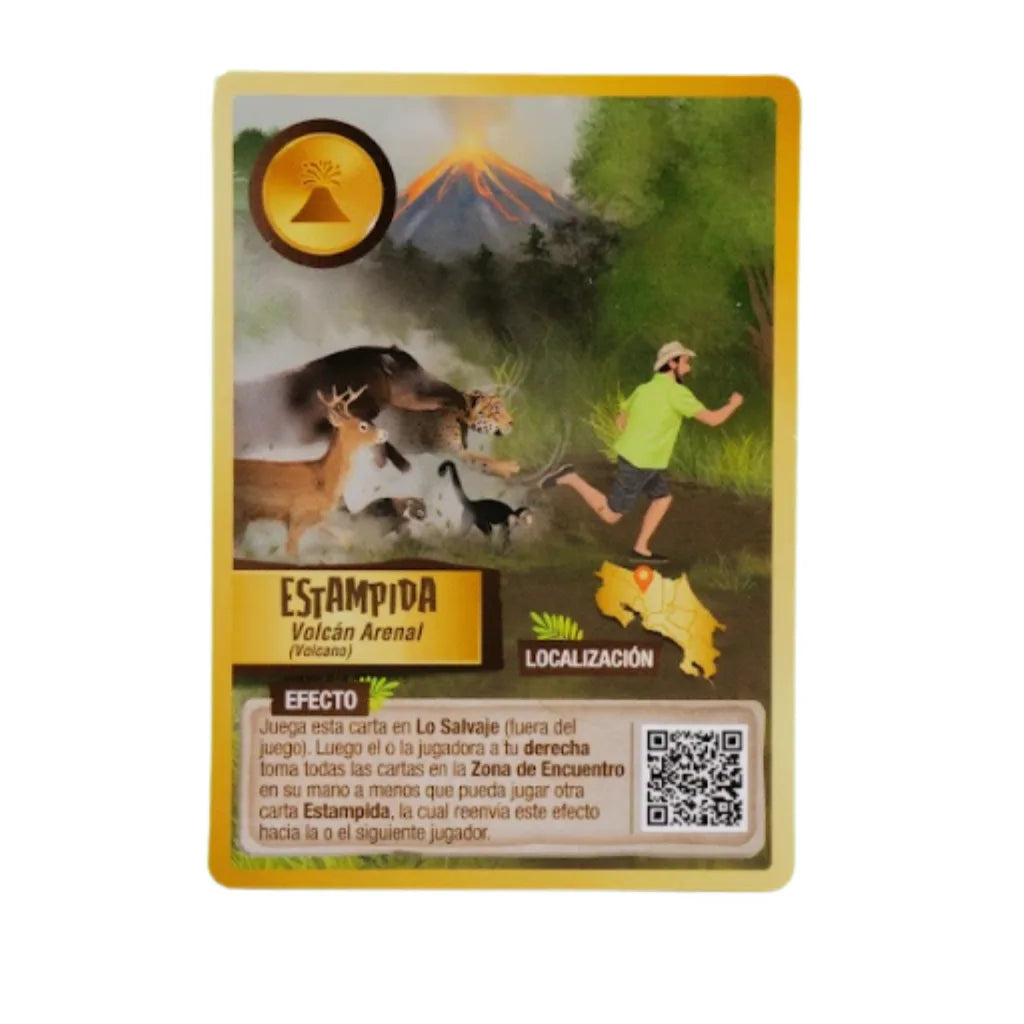 Estampida es un juego de cartas educativo para niños y adultos que te presenta animales increíbles nativos de diferentes países del mundo, comenzando por mi hermoso país, Costa Rica. Cada uno de los dos a cuatro jugadores de Estampida elabora estrategias para liberar a los animales de diferentes sitios de cautiverio de regreso a Lo Salvaje mediante el uso de cartas Fauna y cartas Condición de impacto especial. No hay ganador(a,es) en el juego; ¡lo que importa es que no seas el/la/le/lol último jugador en liberar a los animales! Todo lo que necesitas para jugar está dentro de la caja del Juego de Cartas Estampida. Es muy importante aprender a jugar correctamente. Las siguientes instrucciones lo guiarán.