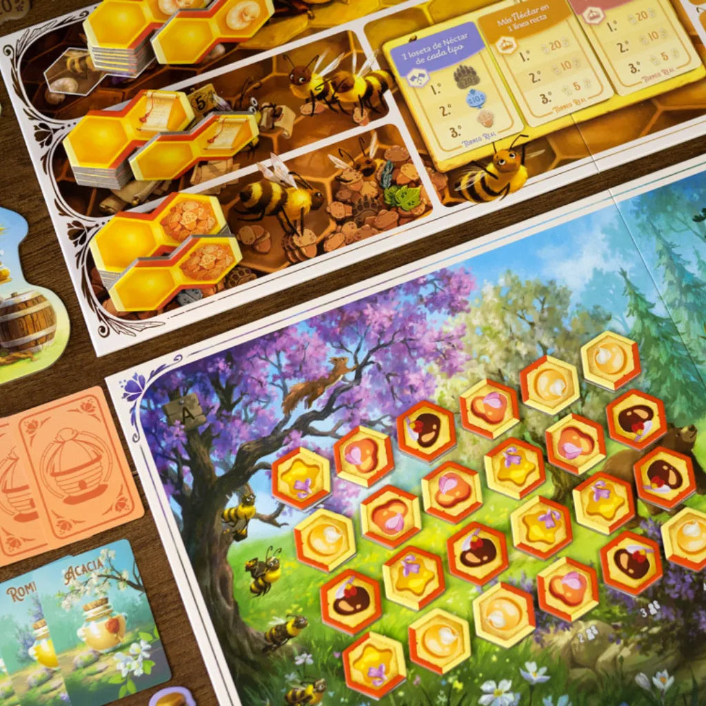 - Componentes de Alta Calidad: Incluye fichas de néctar personalizadas y potes de miel con textura "gomosa" que hacen la experiencia táctil irresistible.