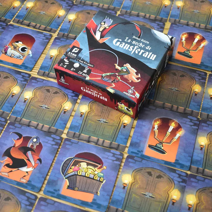 ¿Busca un juego familiar que sea fácil de aprender, emocionante y con un toque de humor negro? La Noche de Gansferatu de Detestable Games es la elección perfecta. Basado en un diseño probado del legendario Reiner Knizia, este título transforma la memoria en una carrera de estrategia y nerviosismo. En cada turno, los jugadores se adentran en los pasillos oscuros del castillo Cuacvania. El objetivo es simple: voltear cartas que revelen tesoros y aldeanos perdidos para ganar puntos. Sin embargo, si su memoria le falla y revela la carta del Gansferatu, ¡pierde todo lo que ha recolectado en esa ronda! Es un desafío constante de 'push your luck' (arriesgarse) donde debe recordar la ubicación de cada pato vampiro. Con partidas cortas (15-20 minutos) y reglas sencillas aptas para mayores de 6 años, este juego es ideal para introducir a los más jóvenes al mundo de los juegos de mesa estratégicos o como un 'filler' divertido para iniciar cualquier noche de juego con amigos.