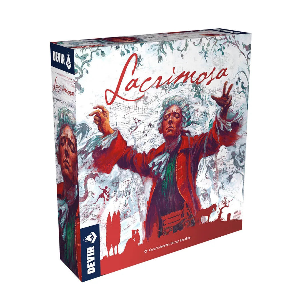 Lacrimosa es un juego que nos transporta a las cortes europeas del siglo XVIII siguiendo la obra del compositor Wolfgang Amadeus Mozart. Diseñado por Gerard Ascensi y Ferran Renalias e ilustrado por Jared Blando, Enrique Corominas y David Esbrí, Lacrimosa ofrece partidas de unos 90 minutos de duración para un máximo de 4 jugadores. Como mecenas del genio austríaco, deseáis ser recordados como su mayor benefactor y pasar a la historia junto a él. Para ello, deberéis acabar de financiar el Réquiem que dejó inconcluso antes de su muerte y demostrar que a lo largo de su vida fuisteis sus más fieles valedores.