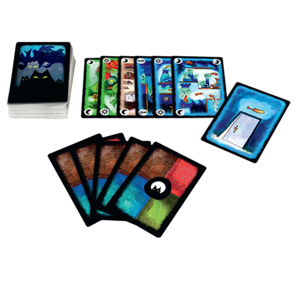 Onirim es un juego divertido que pone a prueba la astucia y la sensatez de los jugadores contra el laberinto siniestro y sus esbirros sombríos tanto si juegan en solitario como en modo cooperativo.