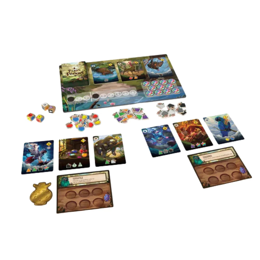 En Parks & Potions, te pones las botas de un experto Ranger del parque, cuya maestría en la alquimia botánica transforma la naturaleza salvaje en un santuario de sanación. A través de una mecánica ágil de gestión de dados, deberás recolectar extractos de la flora local para elaborar potentes pociones capaces de curar las dolencias de los animales de diversos biomas.