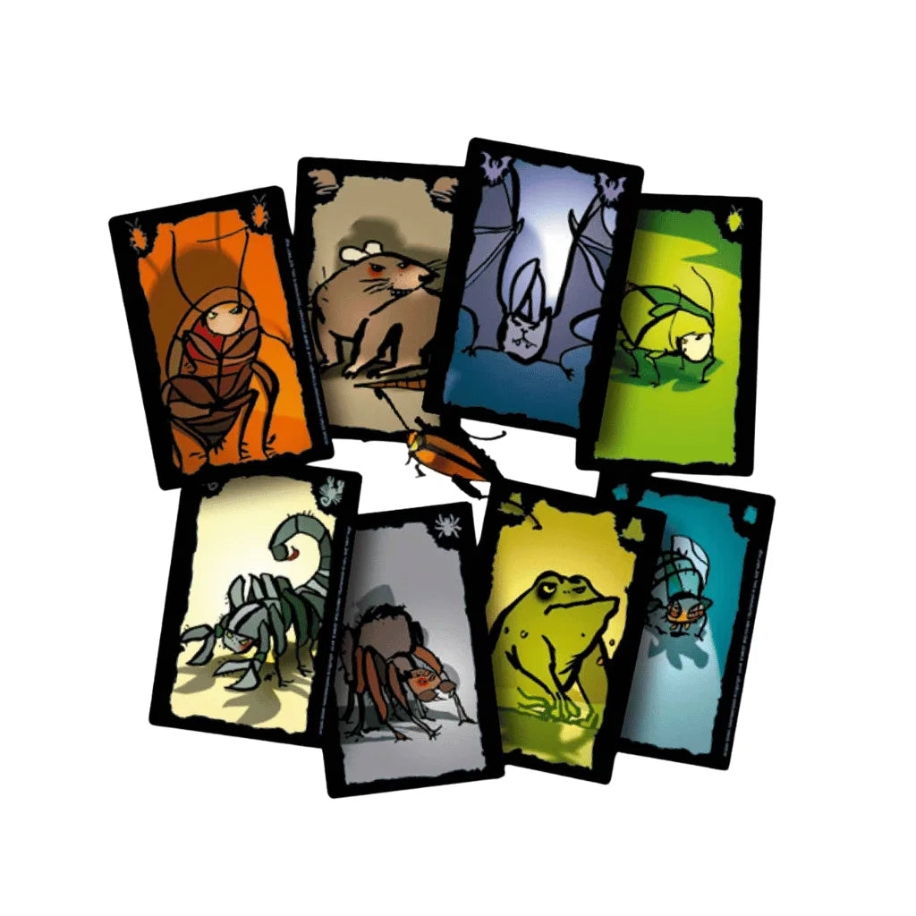 En este divertido juego de faroleo los jugadores intentan endosarse mutuamente tantas cartas como les sea posible. Esto lo harán ofreciendo una carta boca abajo a otro jugador y diciendo, al mismo tiempo, qué bicho aparece dibujado; ¡pero se puede decir la verdad o una mentira! Quien juzgue mal lo que dice el otro deberá quedarse con la carta. Y si alguien forma un póquer, ¡pierde la partida!
