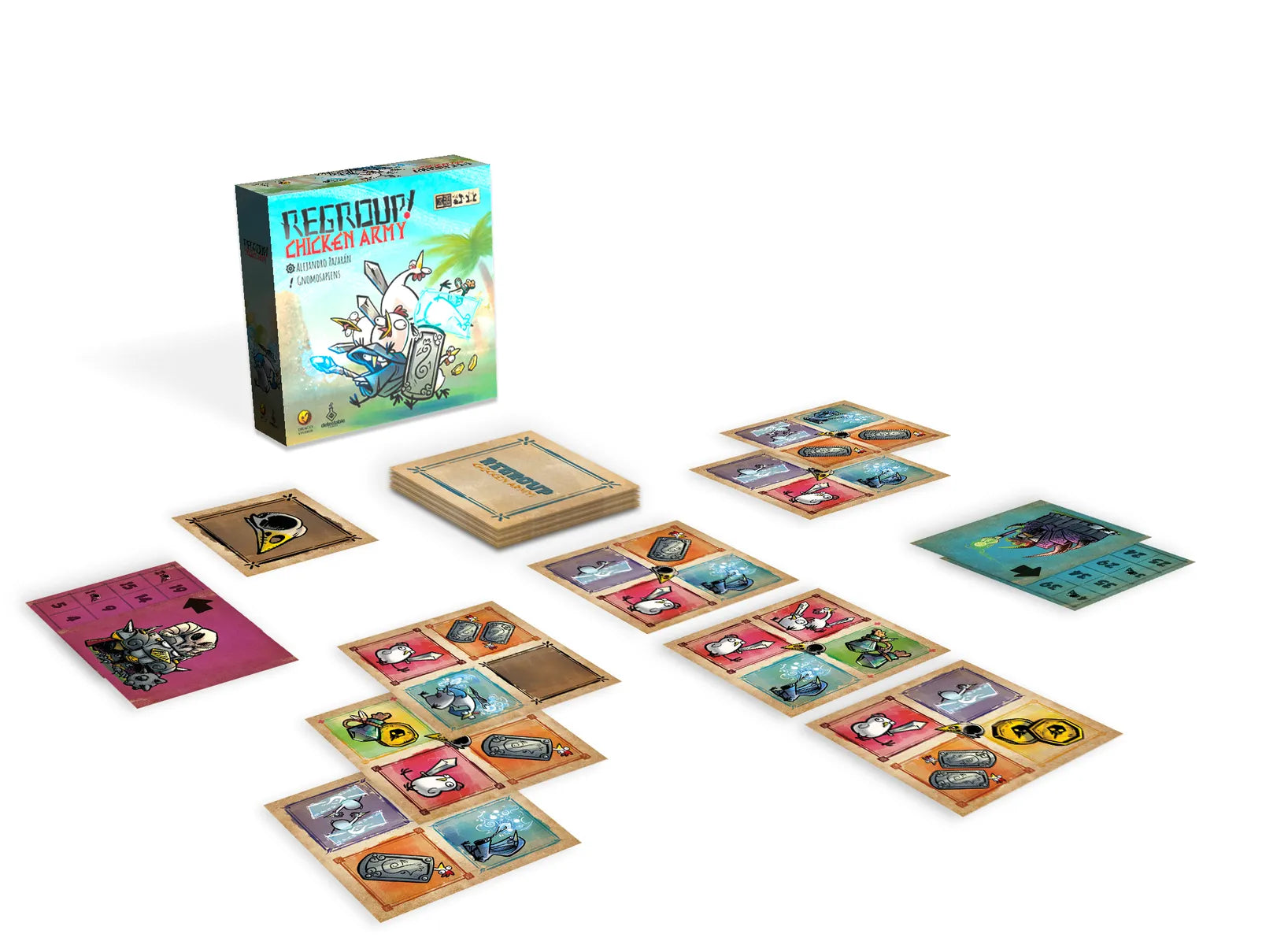 ¡Lidera a los pollos más feroces del gallinero! Regroup! Chicken Army es un juego de cartas de estrategia rápido y competitivo donde comandas un ejército de aves con habilidades únicas.