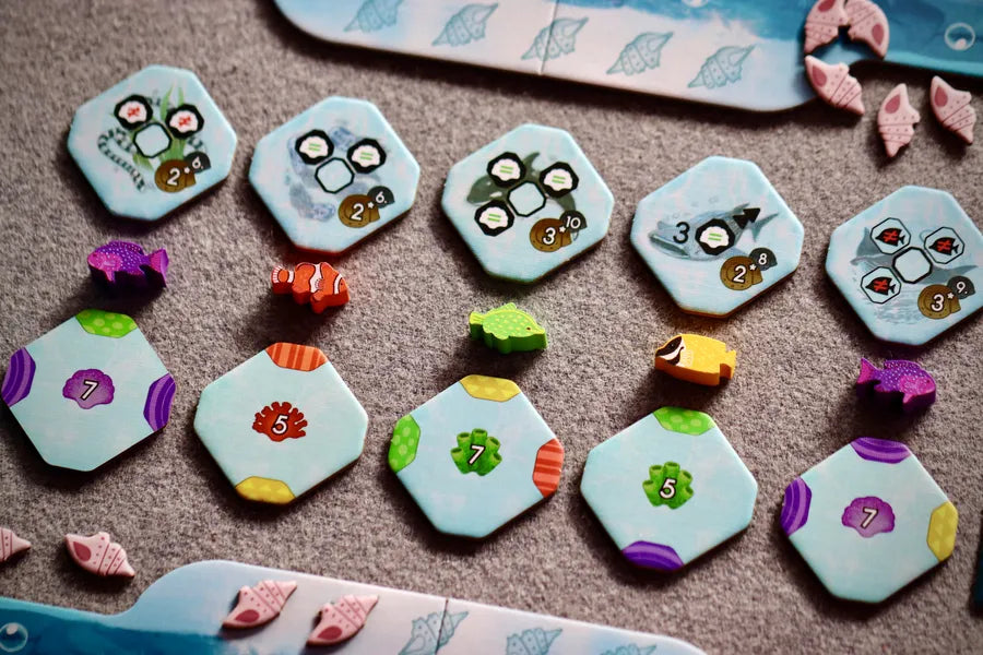 Este es un juego de puzle inspirado en el impresionante Gran Arrecife de Barrera. Shallow Sea te invita a crear tu propio paisaje oceánico vibrante, colocando estratégicamente vida marina, coloridos peces y corales. Lo que hace a este juego de mesa realmente único es su fresco sistema de puzles multi-capa. A diferencia de otros juegos donde las fichas simplemente se apilan, aquí los elementos pueden activarse, desactivarse e incluso moverse, creando combos emocionantes y dilemas que te mantendrán pegado a la mesa. El juego utiliza un mecanismo familiar de 'drafting' al estilo Cascadia, donde en cada turno escogés una ficha (coral o vida marina) y un pez correspondiente para agregar a tu tablero. La rejugabilidad y las oportunidades de combos son lo que distinguen a Shallow Sea, siendo un juego que se disfruta tanto en solitario como en multijugador. Su baja complejidad y su arte hermoso lo hacen perfecto para una noche de juego en familia en Costa Rica.