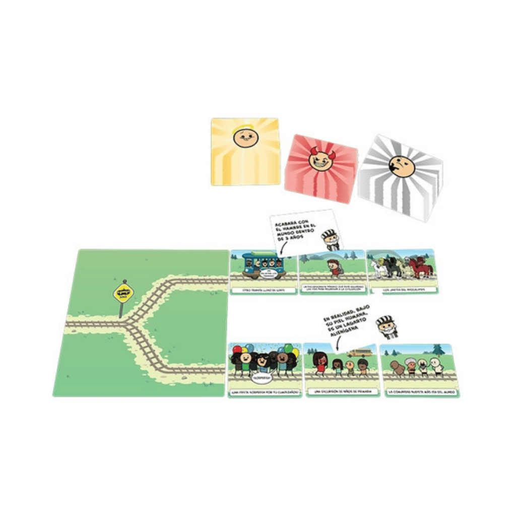 Juega en el papel de un conductor de un tranvía sin frenos que debe elegir la vía a la que dirigirse aplastando a todo el que se cruce en su camino. Mientras tanto, el resto de tus amigos se dividen en dos equipos tratando de convencerte para que no te dirijas a su vía.